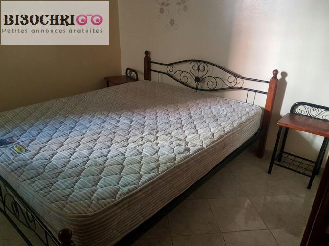 Je met à la vente un lit en fer forgé avec matelas et deux tables de nuit.