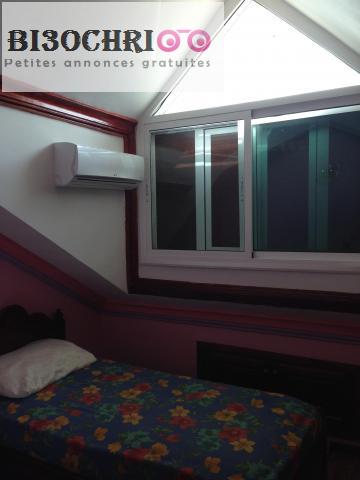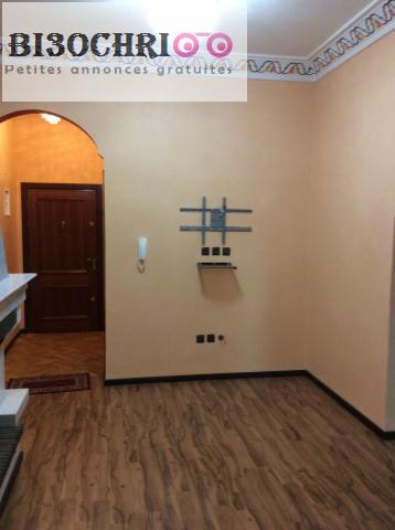 Appartement titré, de 75 m2, au Centre d’Ifrane. Haut standing. Très belle finition, dans une résidence neuve, belle, propre et bien entretenue. Appartement, semi – équipé, bien éclairé, bien aéré et bien ensoleillé. Belle entrée, avec interphone, grand hall et escaliers en marbre. Double vitrage. Au centre-ville, proche de tous services, commerces et restos. A quelques mètres de la bachaouiya d’Ifrane, de la mosquée Mohammed VI, du grand marché, de l’hôpital et des pharmacies. Immeuble très calme et bien sécurisé. Connexion WIFI. Respectueux voisinage. Grand salon avec deux coins ( pour salon marocain et salon moderne ). Très belle cheminée couverte en marbre de Carrare. Chauffage central généralisé, en plus de trois (3) climatiseurs neufs, au salon et dans les deux chambres à coucher. Faux plafond et décor en plâtre. Peinture stico. Salle de bain avec vasque, table en granite, toilettes, bidet et placard de rangement. Cabine de douche en aluminium châtin et vitre fumée. Tout est neuf. Trois (3) lustres Cristal italien de haute qualité au salon. Sol du salon et des chambres à coucher couvert de parquet allemand. Sol de la cuisine et de la salle de bain couvert de gerflex. Cuisine indépendante, équipée et bien aménagée, avec superbe table de travail en granite. Cuisinière de marque, encastrée, avec four électrique et hotte. Réfrigérateur et machine à laver encastrée. Plusieurs placards et coins de rangement. Menuiserie et sanitaire de qualité. Parabole individuelle et téléviseurs muraux au salon et dans les chambres à coucher. Grand parking sécurisé. Deux piscines. Espaces verts avec arbres et jardin. Immeuble bien sécurisé. Contact : T. 0661443377, Courriel : nassefmo@yahoo.fr